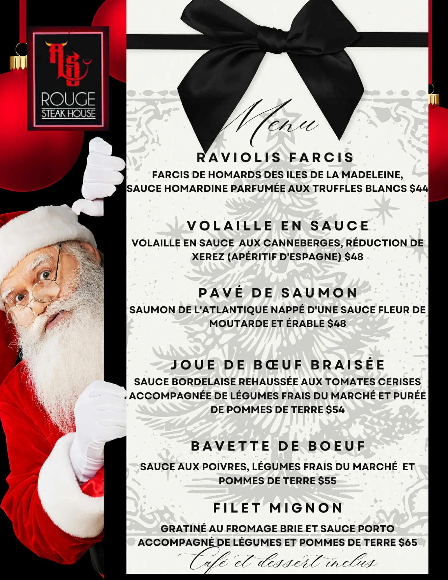 Notre menu propose une sélection exquise de steaks de qualité supérieure, ainsi que des fruits de mer frais, des salades fraîches et des desserts succulents. Nous offrons également une carte de vins soigneusement sélectionnée pour accompagner votre repas.